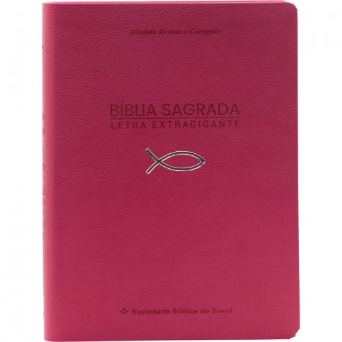 Bíblia em letra extragigante para leitura prolongada sem cansaço visual, ideal para o devocional diário e momentos em família, na tradução ARC.Inclui: Mapas, Referências bíblicas, Notas, Tabela de pesos, Leituras para dias especiais, Como encontrar ajuda, Perdão de Deus, Palavras de Jesus em destaque (letras vermelhas).Capa em couro sintético pink. 1664 páginas, formato 17 × 23.5 cm.A Almeida Revista e Corrigida (ARC) é a tradução bíblica mais utilizada nas igrejas evangélicas do Brasil, com linguagem clássica fiel à tradição de João Ferreira de Almeida.