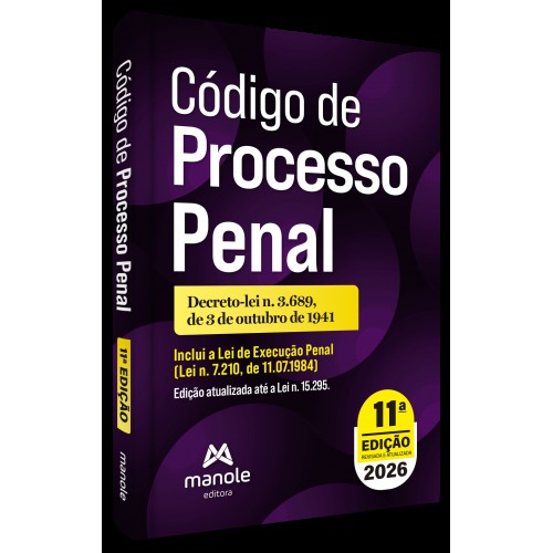 A Editora Manole, prosseguindo com suas publicações jurídicas, apresenta agora seu volume de bolso contendo o Código de Processo Penal (Decreto-lei n. 3.689, de 03.10.1941). Esta edição está atualizada de acordo com as últimas alterações legislativas.Esta edição está atualizada até o dia 19.12.2025, e o leitor poderá manter-se informado sobre as mudanças na legislação até 31.10.2026.