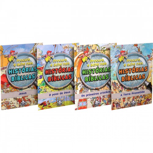Pedrinho é o personagem central dessa empolgante coleção, que convida a criança a embarcar em uma viagem aos tempos bíblicos e acompanhar importantes acontecimentos. Ao ler as histórias, ilustradas com cenários ricos em detalhes e cores vibrantes, dos quatro livros o pequeno leitor será desafiado, por Pedrinho, a encontrar, em cada cena, os objetos e personagens que estão destacados na barra lateral da página. Lúdica e interativa, Procure e ache nas histórias bíblicas tem textos curtos e linguagem simples, que facilitam a compreensão da narrativa. Cada livro reúne sete passagens bíblicas e apresentam os seguintes temas: O Povo de Deus, Jesus, Os Primeiros Cristãos e a Terra Prometida.