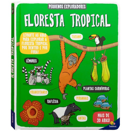 Dê uma espiada para descobrir o que você pode fazer para ajudar a cuidar da floresta tropical. Convocando todos os Pequenos Exploradores! Vamos dar uma olhada mais de perto dentro das florestas tropicais do mundo. Levante as abas para encontrar muitos dos incríveis animais que vivem aqui, descubra quais plantas crescem em cada camada e aprenda sobre a maior floresta tropical do mundo - a Amazônia. Tem muita coisa para explorar!