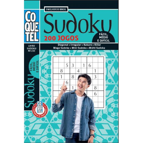 Desafie sua mente e divirta-se com o Livro Coquetel Sudoku, que traz 200 jogos de Sudoku, incluindo diagonal, irregular, Kakuro, Killer, Mega Sudoku, Mini Sudoku e Múltiplo Sudoku. Com níveis de dificuldade que vão do fácil ao difícil, este livro é perfeito para quem quer testar suas habilidades de lógica e melhorar a concentração.